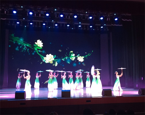 高雅艺术进校园——中国东方演艺集团大型歌舞晚会《水墨中华· 雅》亮相西安交通大学。 悠扬的乐声中,一行翠色衣裙的少女缓缓起舞。《茉莉花开》乐音从舒缓到铿锵,舞姿渐渐热烈,仿佛是一朵朵茉莉花在舞台上愈开愈盛,令人痴醉。起舞的男子威武矫健,埙声悠远伴着古筝的激昂,眼前是一片《水墨天书》。《芦花》《风华百代》《西部情歌》《春江花月夜》《梅兰竹菊》等精彩节目轮番上演,各族同胞的联欢歌舞更是让全场欢腾起来。佤族的舞蹈《太阳部落》充满野性,洋溢着生命的活力;马头琴声响起,蒙古族《鸿雁》的歌声中带着草原的辽阔、策马扬鞭的潇洒;维吾尔族的琴弦上,《天山放歌》荡漾着的是浓浓的新疆风情,姑娘们的舞步更是烂漫动人;朝鲜族的歌舞《桔梗谣》带给我们一个勤劳可爱的的少女形象;汉族的《茉莉飘香》则尽显江南的柔美可爱,歌声中带着俏皮与灵动;藏族歌舞《康定情》唱出了康定溜溜的山,溜溜的姑娘,溜溜的小伙,仿佛是盛开的格桑花。演出最后,一群白衣的舞者在翩翩起舞,衣袂飘飘,英姿飒爽,用《盛世鸿姿》歌颂着盛世华章。整场演出精彩纷呈,现场观众深深沉醉其中,东方演艺集团为该校师生奉献了一场高水平的艺术盛宴。