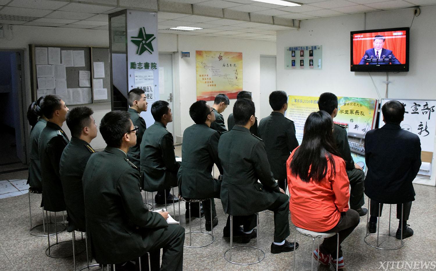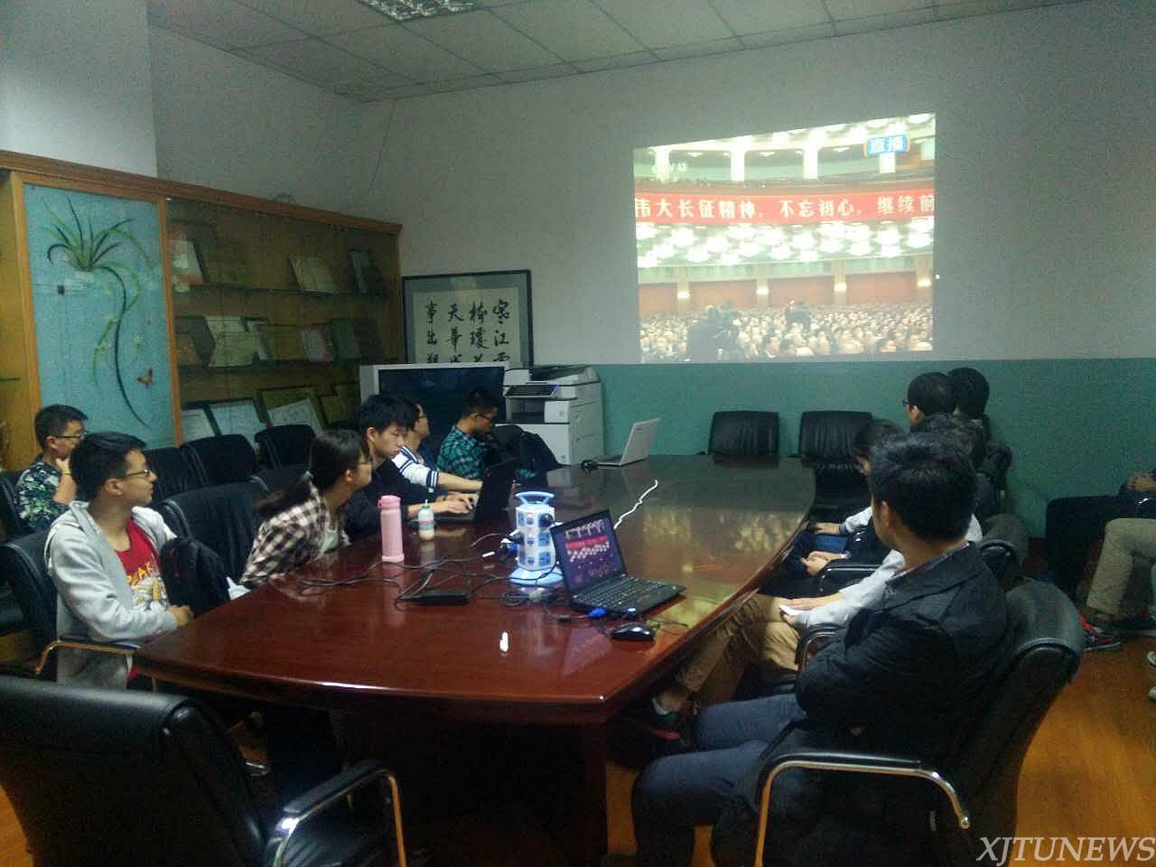 上午10时,理学院、电气学院、能动学院、电信学院、材料学院、化工学院、医学部、人文学院、马克思主义学院、外国语学院等学院基层研究生党支部分别观看了纪念大会盛况。铭记长征精神,在实现中华民族伟大复兴“中国梦”的新的长征路上,贡献自己的一份力量——这是收看纪念大会后,大多数同学的心声。
