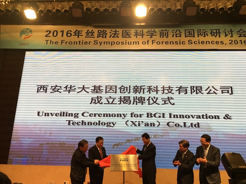 开幕式上为西安华大基因创新科技有限公司举行了揭牌仪式。西安交大、西咸新区沣东新城管理委员会与深圳华大基因科技股份有限公司合作在陕西成立西安华大基因创新科技有限公司,建立精准医学联盟和遗传与肿瘤诊断中心,将全面开展教育、科研、生产,以及与农业、医疗、司法等领域合作研究。