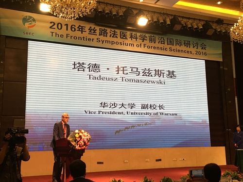 10月30日,2016法医科学前沿国际研讨会暨丝路法医联盟成立大会在丝绸之路的起点——西安召开。陕西省人民政府秘书长陈国强、司法部司法鉴定管理局副局长关维斌、西安交通大学校长王树国教授、国际知名法医鉴识科学家李昌钰博士、波兰华沙大学副校长塔德·托马兹斯基教授和深圳华大基因研究院理事长杨焕明院士出席会议开幕式并讲话。开幕式由陕西省委组织部副部长、人社厅党组书记、厅长冯力军主持。